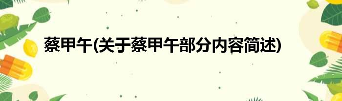 大家好,今天小方来说说一篇关于蔡甲午,关于蔡甲午部分内容简述的文章,那么现在就为大家来简单介绍下,希望对各位小伙伴们有所帮助。