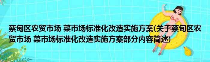 蔡甸区农贸市场 菜市场标准化改造实施方案(关于蔡甸区农贸市场 菜市场标准化改造实施方案部分内容简述)