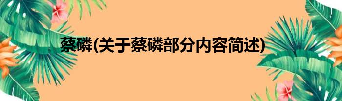 蔡磷(关于蔡磷部分内容简述)