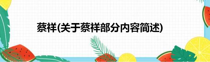 大家好,今天小方来说说一篇关于蔡祥,关于蔡祥部分内容简述的文章,那么现在就为大家来简单介绍下,希望对各位小伙伴们有所帮助。