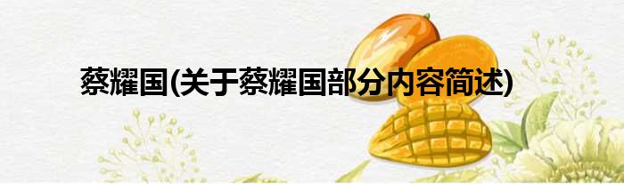 导读 大家好,今天小方来说说一篇关于蔡耀国,关于蔡耀国部分内容简述的文章,那么现在就为大家来简单介绍下,希望对各位小伙伴们有所帮助。