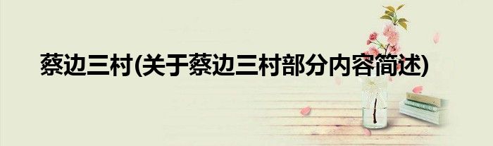 导读 大家好,今天小方来说说一篇关于蔡边三村,关于蔡边三村部分内容简述的文章,那么现在就为大家来简单介绍下,希望对各位小伙伴们有所帮助。