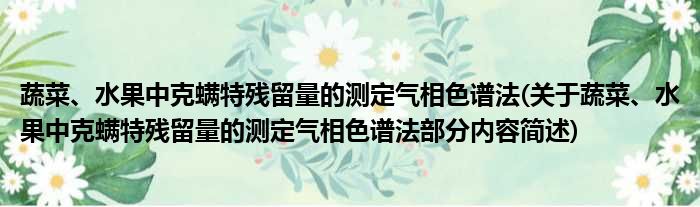 蔬菜、水果中克螨特残留量的测定气相色谱法(关于蔬菜、水果中克螨特残留量的测定气相色谱法部分内容简述)
