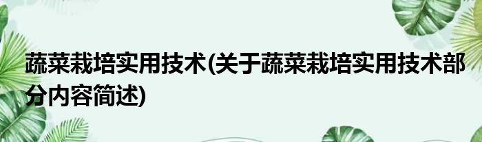 蔬菜栽培实用技术(关于蔬菜栽培实用技术部分内容简述)