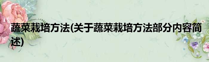 蔬菜栽培方法(关于蔬菜栽培方法部分内容简述)