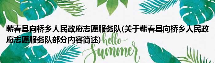 蕲春县向桥乡人民政府志愿服务队(关于蕲春县向桥乡人民政府志愿服务队部分内容简述)