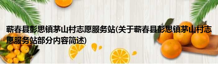 蕲春县彭思镇茅山村志愿服务站(关于蕲春县彭思镇茅山村志愿服务站部分内容简述)