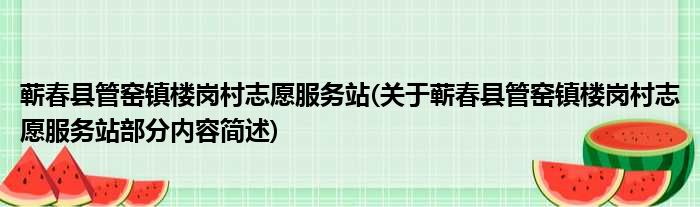 蕲春县管窑镇楼岗村志愿服务站(关于蕲春县管窑镇楼岗村志愿服务站部分内容简述)