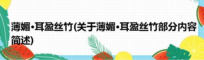 薄媚·耳盈丝竹(关于薄媚·耳盈丝竹部分内容简述)