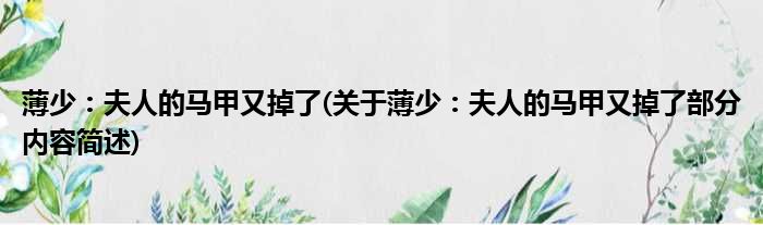 导读 大家好,今天小方来说说一篇关于薄少:夫人的马甲又掉了,关于薄少:夫人的马甲又掉了部分内容简述的文章,那么现在就为大家来简单介绍下,