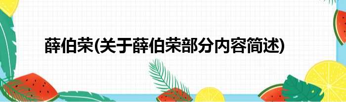导读 大家好,今天小方来说说一篇关于薛伯荣,关于薛伯荣部分内容简述的文章,那么现在就为大家来简单介绍下,希望对各位小伙伴们有所帮助。