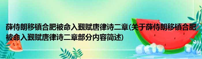 薛侍朗移镇合肥被命入觐赋唐律诗二章(关于薛侍朗移镇合肥被命入觐赋唐律诗二章部分内容简述)