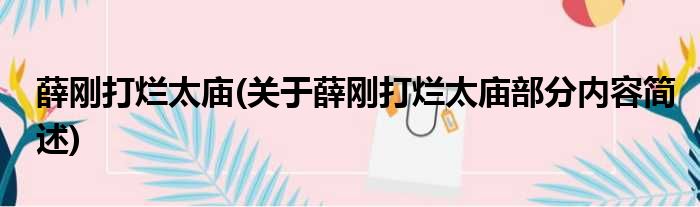 薛刚打烂太庙(关于薛刚打烂太庙部分内容简述)