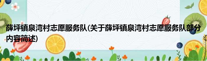 薛坪镇泉湾村志愿服务队(关于薛坪镇泉湾村志愿服务队部分内容简述)