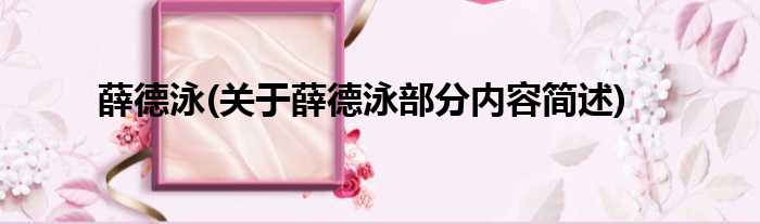 导读 大家好,今天小方来说说一篇关于薛德泳,关于薛德泳部分内容简述的文章,那么现在就为大家来简单介绍下,希望对各位小伙伴们有所帮助。