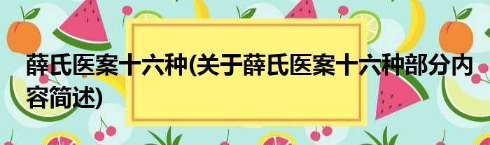 薛氏医案十六种(关于薛氏医案十六种部分内容简述)