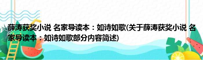 薛涛获奖小说 名家导读本:如诗如歌(关于薛涛获奖小说 名家导读本:如诗如歌部分内容简述)