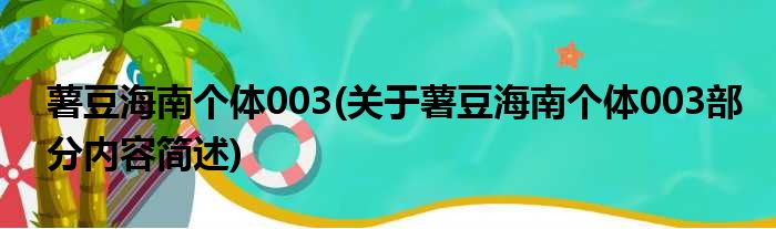 薯豆海南个体003(关于薯豆海南个体003部分内容简述)