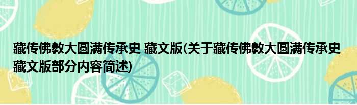 藏传佛教大圆满传承史 藏文版(关于藏传佛教大圆满传承史 藏文版部分内容简述)