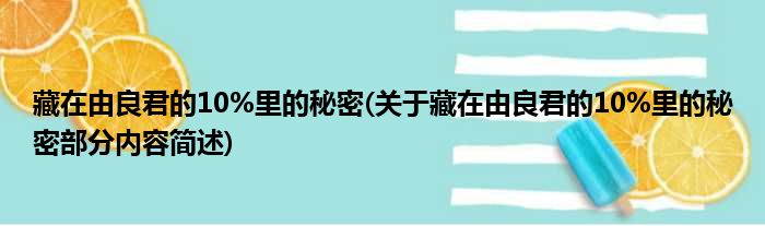 导读 大家好,今天小方来说说一篇关于藏在由良君的10%里的秘密,关于藏在由良君的10%里的秘密部分内容简述的文章,那么现在就为大家来简单介绍下