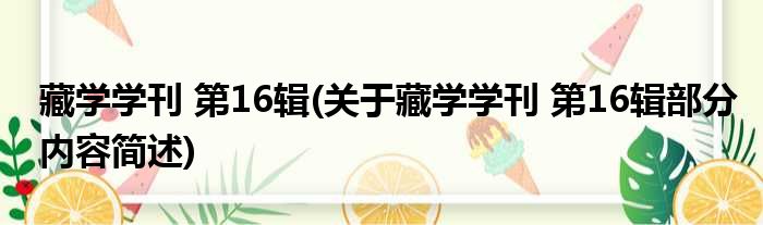 导读 大家好,今天小方来说说一篇关于藏学学刊 第16辑,关于藏学学刊 第16辑部分内容简述的文章,那么现在就为大家来简单介绍下,希望对各位小