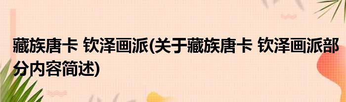 藏族唐卡 钦泽画派(关于藏族唐卡 钦泽画派部分内容简述)