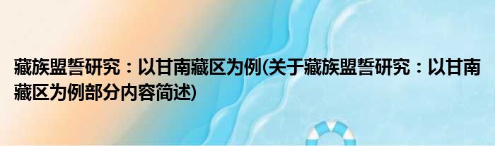导读 大家好,今天小方来说说一篇关于藏族盟誓研究:以甘南藏区为例,关于藏族盟誓研究:以甘南藏区为例部分内容简述的文章,那么现在就为大家来