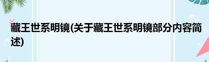 藏王世系明镜(关于藏王世系明镜部分内容简述)