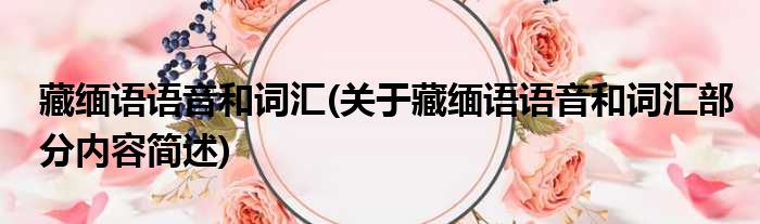 藏缅语语音和词汇(关于藏缅语语音和词汇部分内容简述)