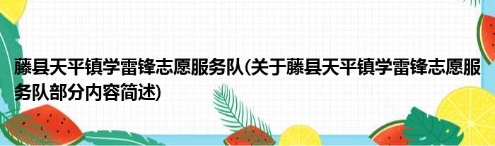 藤县天平镇学雷锋志愿服务队(关于藤县天平镇学雷锋志愿服务队部分内容简述)