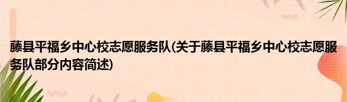 藤县平福乡中心校志愿服务队(关于藤县平福乡中心校志愿服务队部分内容简述)