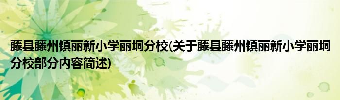 藤县藤州镇丽新小学丽垌分校(关于藤县藤州镇丽新小学丽垌分校部分内容简述)
