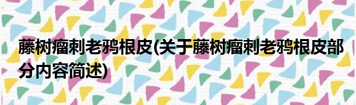 藤树瘤刺老鸦根皮(关于藤树瘤刺老鸦根皮部分内容简述)