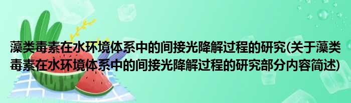 藻类毒素在水环境体系中的间接光降解过程的研究(关于藻类毒素在水环境体系中的间接光降解过程的研究部分内容简述)