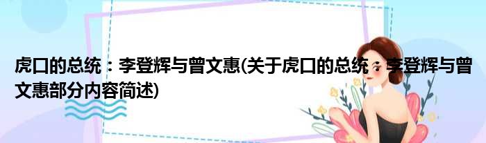 导读 大家好,今天小方来说说一篇关于虎口的总统:李登辉与曾文惠,关于虎口的总统:李登辉与曾文惠部分内容简述的文章,那么现在就为大家来简单
