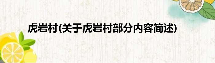 导读 大家好,今天小方来说说一篇关于虎岩村,关于虎岩村部分内容简述的文章,那么现在就为大家来简单介绍下,希望对各位小伙伴们有所帮助。