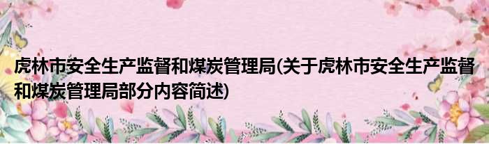 虎林市安全生产监督和煤炭管理局(关于虎林市安全生产监督和煤炭管理局部分内容简述)
