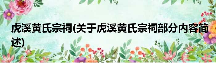 虎溪黄氏宗祠(关于虎溪黄氏宗祠部分内容简述)