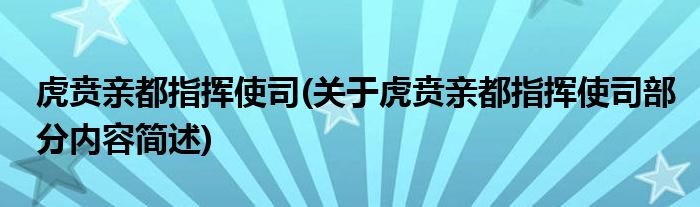 虎贲亲都指挥使司(关于虎贲亲都指挥使司部分内容简述)