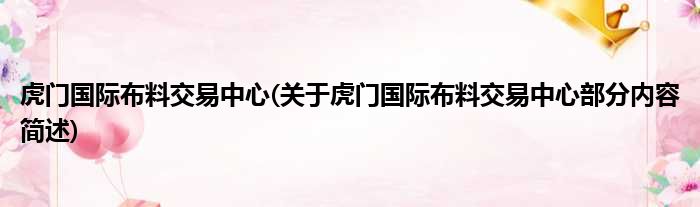 虎门国际布料交易中心(关于虎门国际布料交易中心部分内容简述)