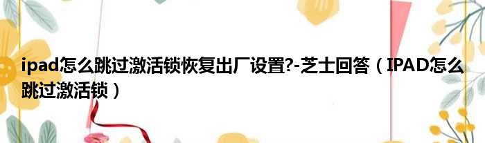 ipad怎么跳过激活锁恢复出厂设置?-芝士回答(IPAD怎么跳过激活锁)