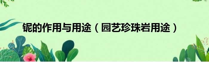 导读 大家好,小东方来为大家解答以上的问题。铌的作用与用途,园艺珍珠岩用途这个很多人还不知道,现在让我们一起来看看吧!1、园艺用的珍珠岩是