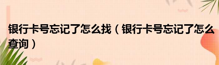 银行卡号忘记了怎么找(银行卡号忘记了怎么查询)