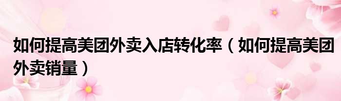 如何提高美团外卖入店转化率(如何提高美团外卖销量)