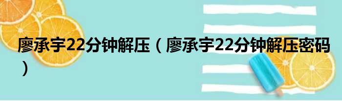 廖承宇22分钟解压(廖承宇22分钟解压密码)
