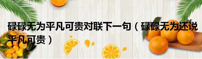 碌碌无为平凡可贵对联下一句(碌碌无为还说平凡可贵)