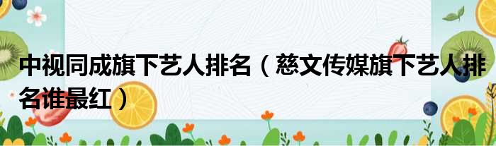 中视同成旗下艺人排名(慈文传媒旗下艺人排名谁最红)