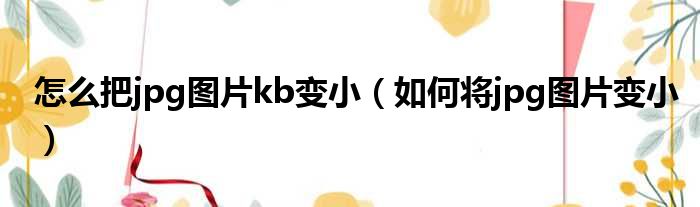 怎么把jpg图片kb变小(如何将jpg图片变小)