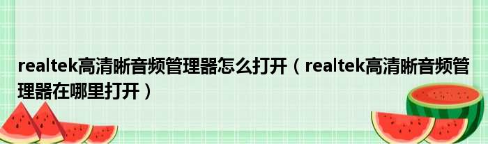 realtek高清晰音频管理器怎么打开(realtek高清晰音频管理器在哪里打开)