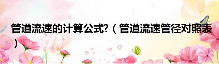 导读 大家好,小东方来为大家解答以上的问题。管道流速的计算公式?,管道流速管径对照表这个很多人还不知道,现在让我们一起来看看吧!1、管径流速
